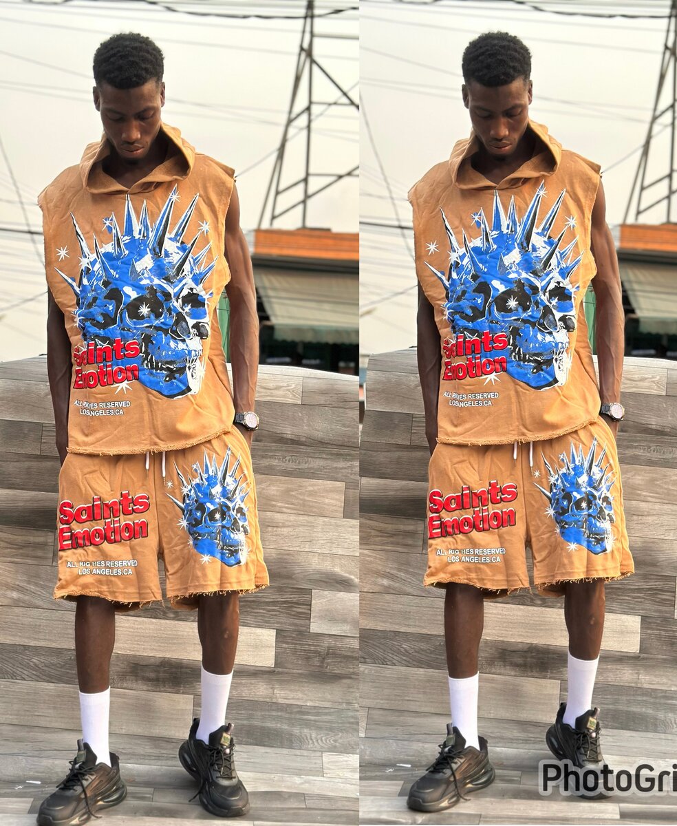 Vêtement décontracté pour homme avec imprimé crâne et motifs urbains. Confortable et tendance, idéal pour les sorties ou les activités quotidiennes.