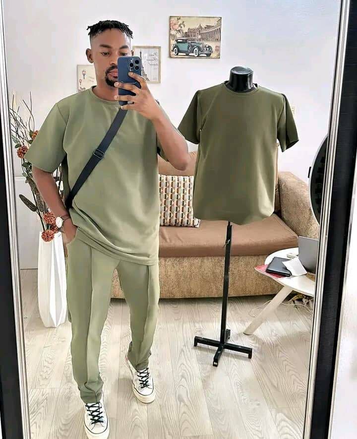 Ensemble élégant pour homme, composé d'un T-shirt et d'un pantalon assorti. Confortable et idéal pour les occasions décontractées. Disponible en plusieurs couleurs.