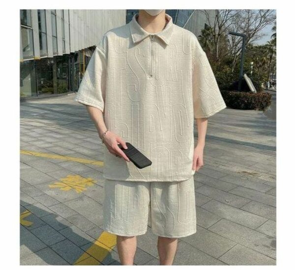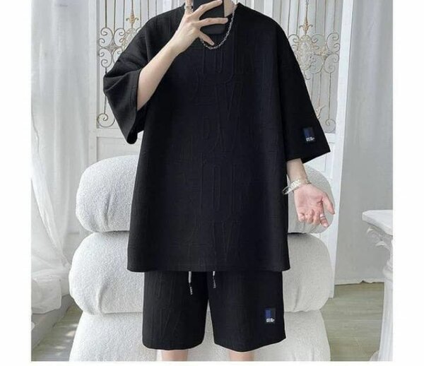 Ensemble homme moderne et confortable. T-shirt imprimé 'I'm Fashion' et short 'Start Move'. Idéal pour le sport ou les sorties décontractées.