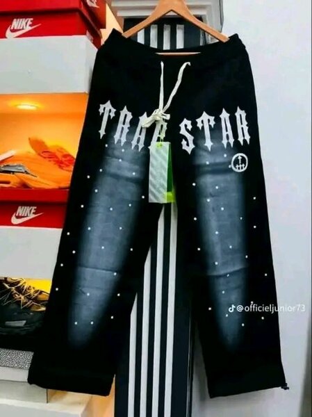 Découvrez notre ensemble tendance pour homme, composé d'un T-shirt VALLEY à motif squelette et de jeans noirs à strass. Idéal pour un style urbain et décontracté.