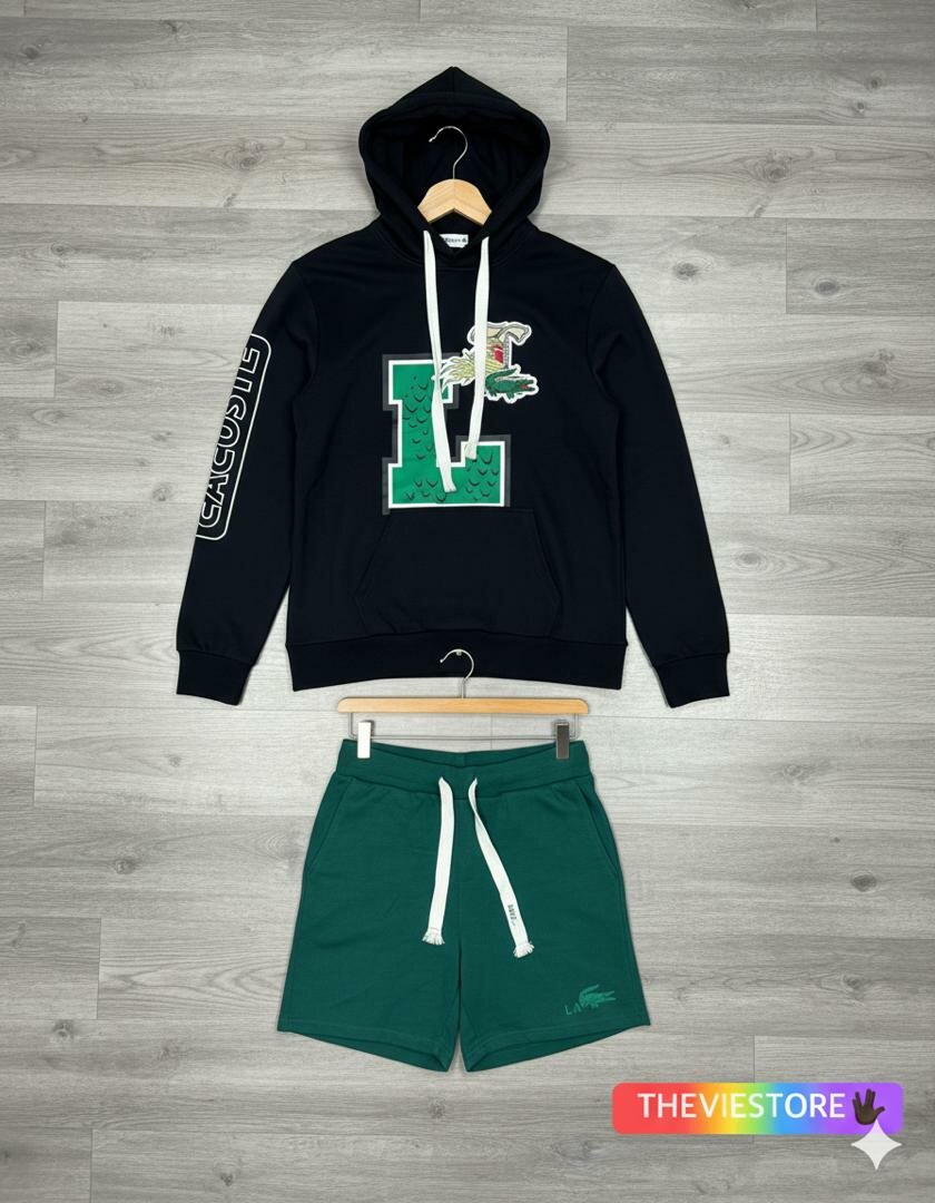 Ensemble tendance avec un hoodie imprimé et un short vert confortable. Idéal pour un style décontracté au quotidien ou pour le sport. Tissu doux et respirant.