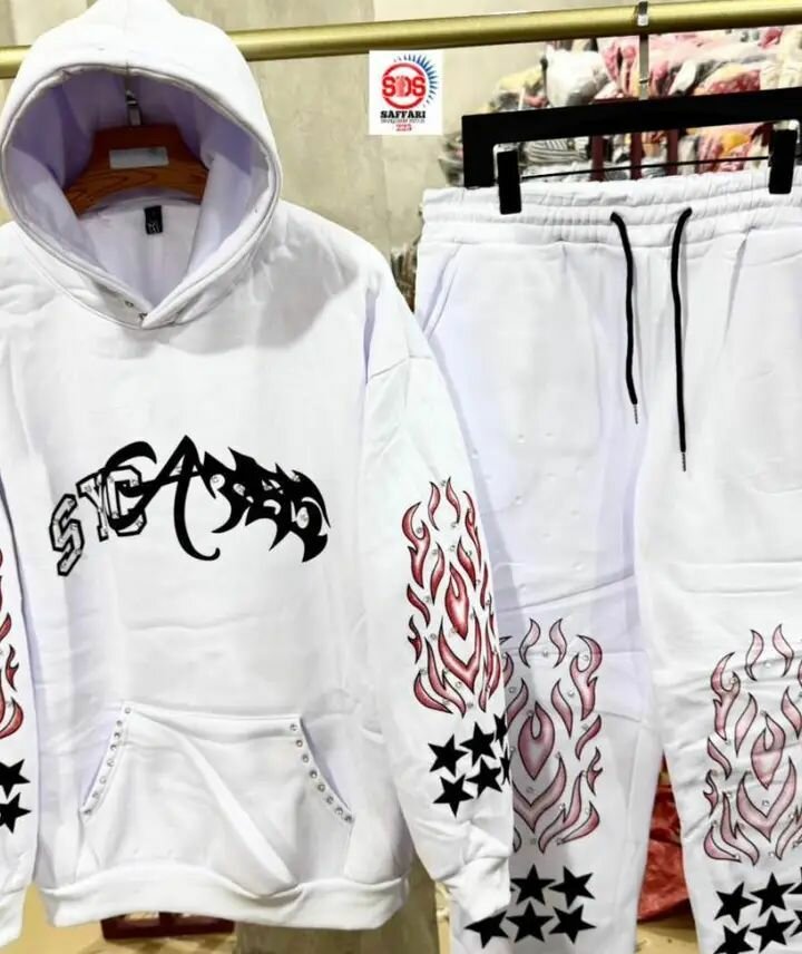 Un ensemble tendance de sweat à capuche et pantalon unisexe, parfait pour un look casual et moderne. Disponible en noir et blanc avec motifs dynamiques, idéal pour le quotidien ou les sorties. Confort et style assurés!