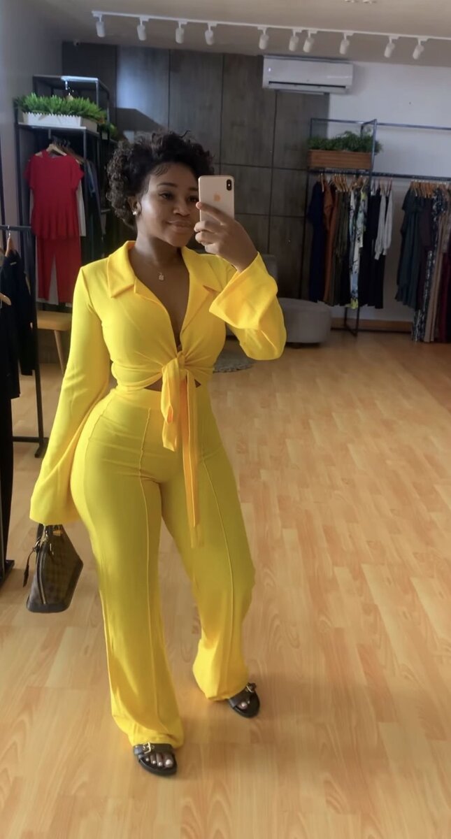 Ajoutez une touche de soleil à votre garde-robe avec cet ensemble jaune éclatant. Le design noué offre un style unique et flatteur, parfait pour les occasions décontractées ou semi-formelles. Confortable et chic, cet ensemble est idéal pour les femmes modernes à la recherche de style et de confort.