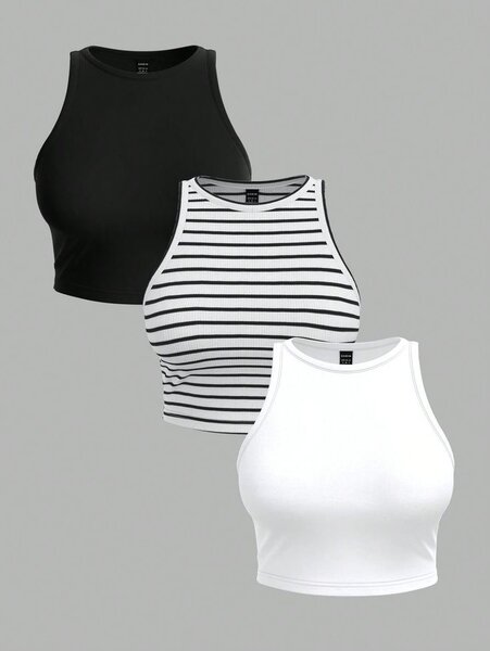 Optez pour cet ensemble tendance composé d'une jupe élégante et d'un débardeur rayé. Parfait pour un look décontracté et stylé. Idéal pour les sorties estivales.