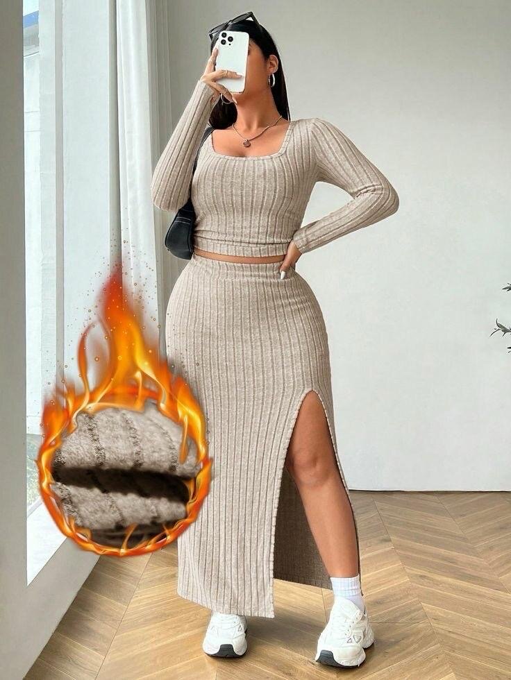 Découvrez cet ensemble élégant composé d'un haut et d'une jupe fendue en tricot beige. Confectionné avec des matériaux de qualité, cet ensemble est idéal pour les femmes qui cherchent une tenue chic et confortable. Parfait pour les sorties décontractées ou les occasions spéciales, il offre une silhouette flatteuse et un style moderne.
