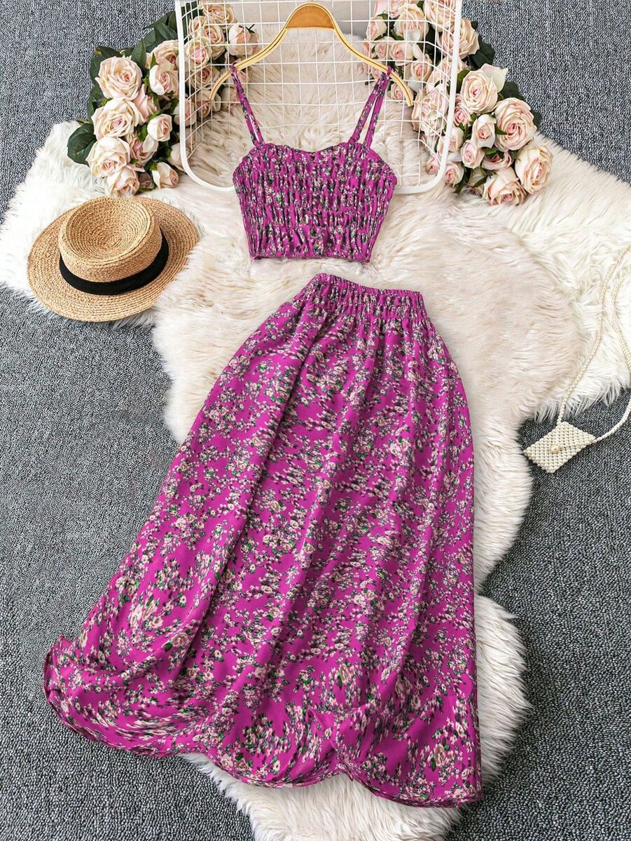 Découvrez cet ensemble élégant composé d'un haut ajusté et d'une jupe longue fluide à motif floral rose. Parfait pour les occasions spéciales ou une soirée décontractée. Conçu dans un tissu confortable et léger.