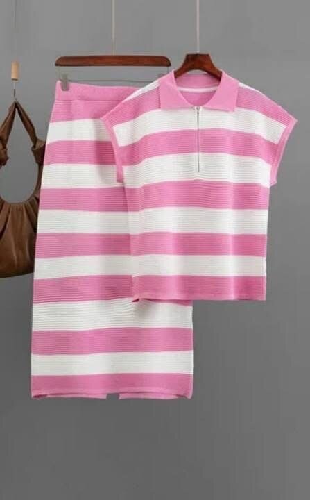 Découvrez cet ensemble chic composé d'une jupe et d'un haut à rayures, idéal pour une allure élégante et moderne. Parfait pour des occasions décontractées ou professionnelles, ce set ajoute une touche de sophistication à votre garde-robe. Disponible en plusieurs couleurs, il se marie facilement avec divers accessoires pour un look personnalisé.