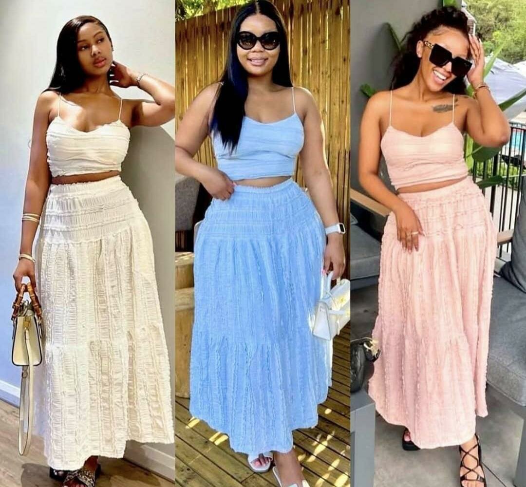 Élégante jupe longue avec top assorti, idéale pour les journées ensoleillées. Disponible en plusieurs couleurs douces. Parfait pour un look estival décontracté et chic. Tissu léger et confortable pour un port agréable toute la journée. Idéal pour la plage, une sortie entre amis ou un brunch dominical.