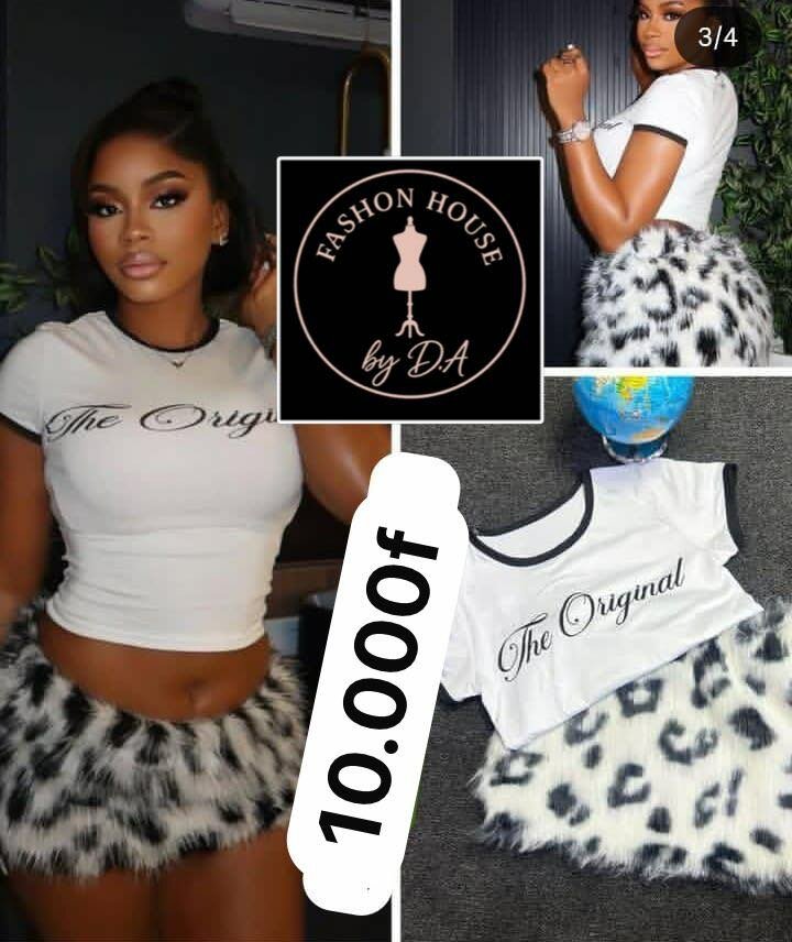 Découvrez notre ensemble tendance avec une jupe en fausse fourrure léopard et un t-shirt imprimé. Parfait pour une soirée ou un événement. Offrez-vous un style unique et audacieux !