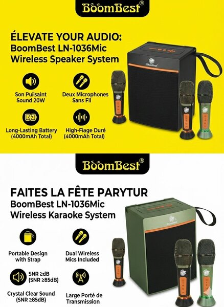 BoomBest Système Karaoke Sans Fil
