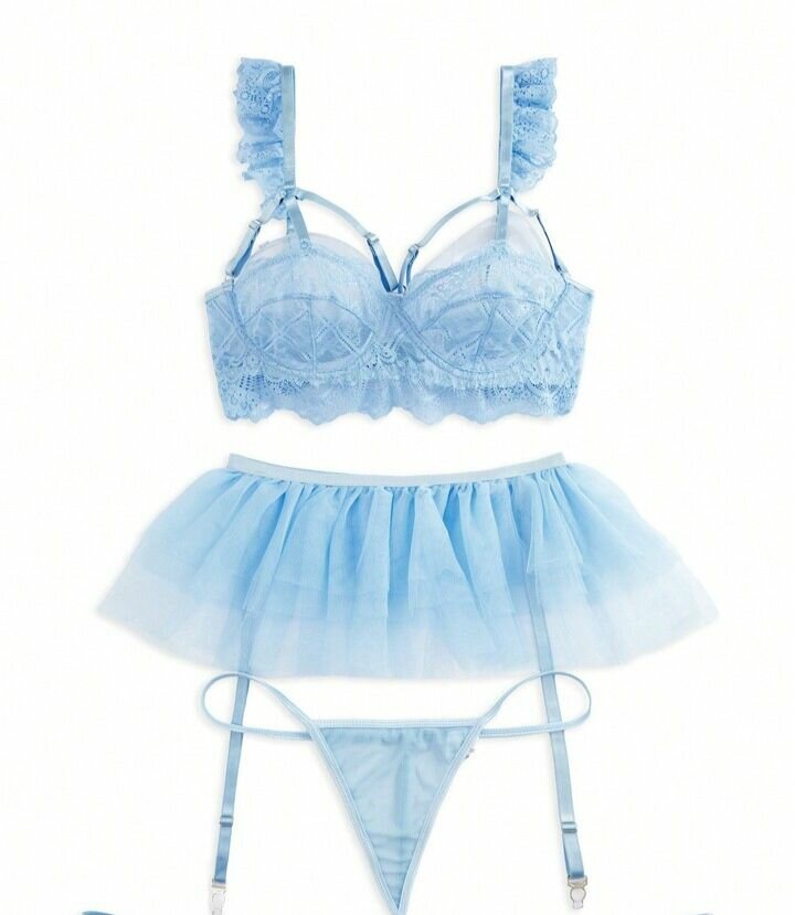 Apportez une touche de séduction à votre garde-robe avec cet ensemble lingerie bleu. Confectionné en dentelle délicate et tulle, il offre une allure féminine et élégante. Idéal pour les occasions spéciales, il allie confort et style pour vous sentir unique et irrésistible.