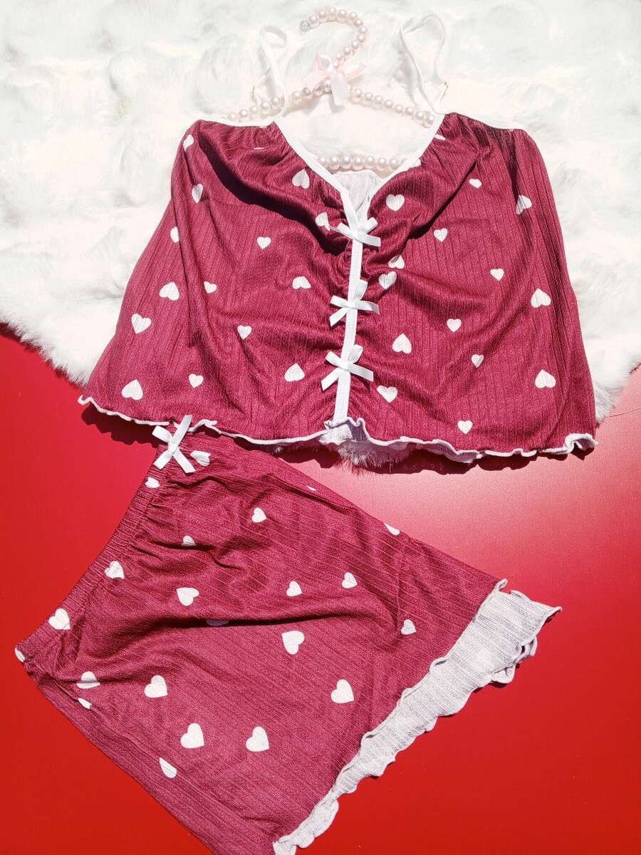 Découvrez cet ensemble de lingerie rouge séduisant orné de motifs cœurs. Confortable et élégant, il est parfait pour des moments spéciaux ou pour se sentir belle au quotidien.