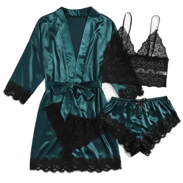 Découvrez cet ensemble lingerie élégant en satin, idéal pour des moments de confort et de séduction. Ce set comprend un soutien-gorge, une culotte et un peignoir coordonné, tous ornés de dentelle délicate. Parfait pour vous faire sentir confiante et féminine chaque jour ou pour une occasion spéciale.