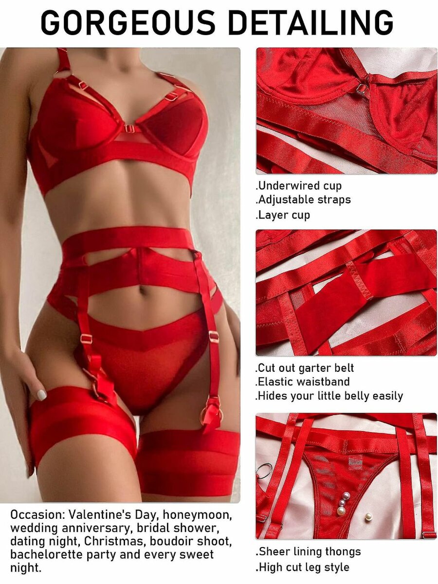 Découvrez cet ensemble lingerie captivant, idéal pour des occasions spéciales comme la Saint-Valentin ou un shooting boudoir. Avec ses bonnets à armatures, ses bretelles ajustables et sa ceinture découpée, il sublime toutes vos courbes. Sa matière douce et élastique assure un confort optimal et met en valeur votre silhouette. Ajoutez une touche de glamour à votre collection avec cet ensemble irrésistible.