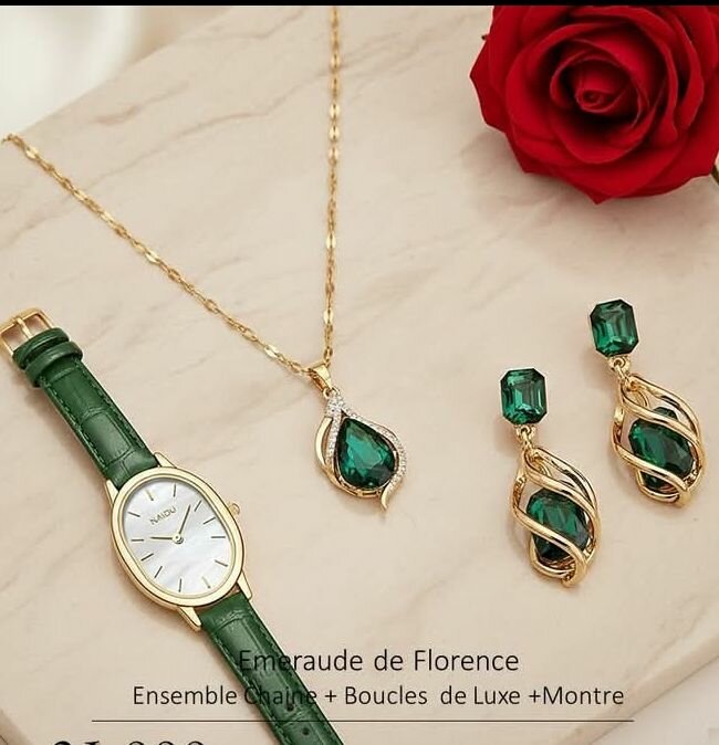 Ensemble Montre et Bijoux Vert Émeraude