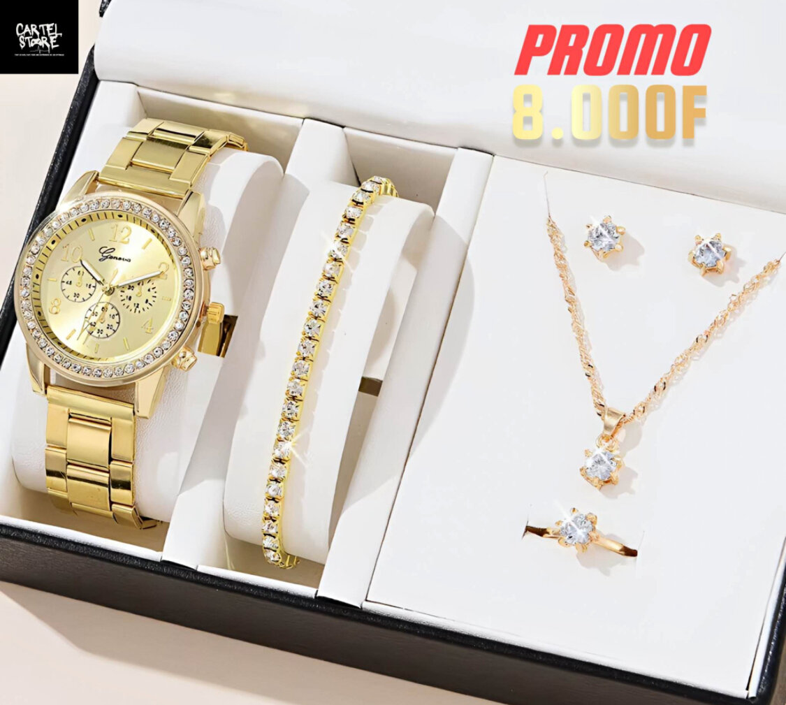 Ensemble élégant comprenant une montre et des bijoux de luxe. Livré dans un coffret cadeau.
