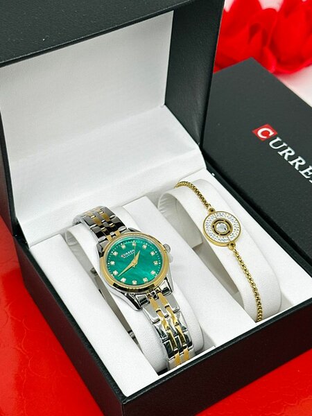 Découvrez cet ensemble élégant comprenant une montre dorée avec un cadran vert saisissant, accompagnée de bijoux assortis en forme de cœur. Parfait pour embellir vos tenues quotidiennes ou pour un cadeau inoubliable. Ce set est idéal pour ceux qui apprécient le style et l'élégance.