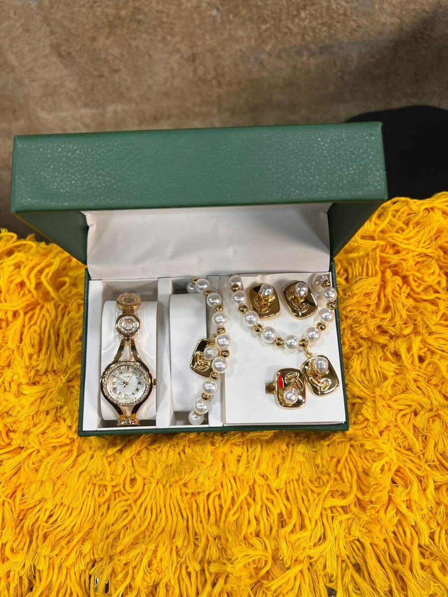 Sublimez votre style avec cet ensemble de montre et bijoux luxueux. Idéal pour les occasions spéciales, ce set inclut une montre élégante, des boucles d'oreilles et un bracelet assortis. Un choix parfait pour une touche de glamour.