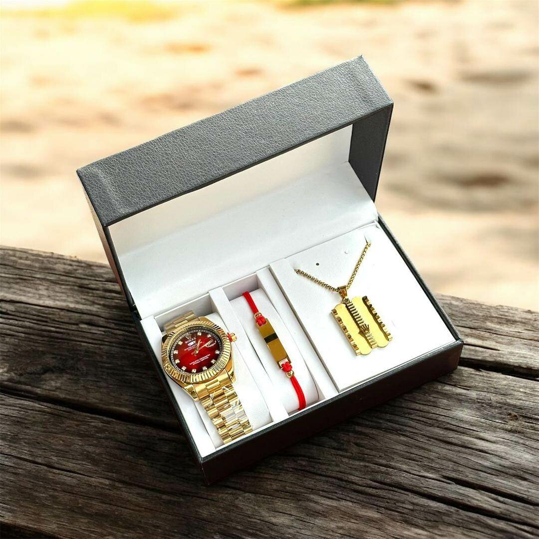 Découvrez cet ensemble élégant comprenant une montre dorée, un collier et un bracelet. Un cadeau idéal pour les occasions spéciales.