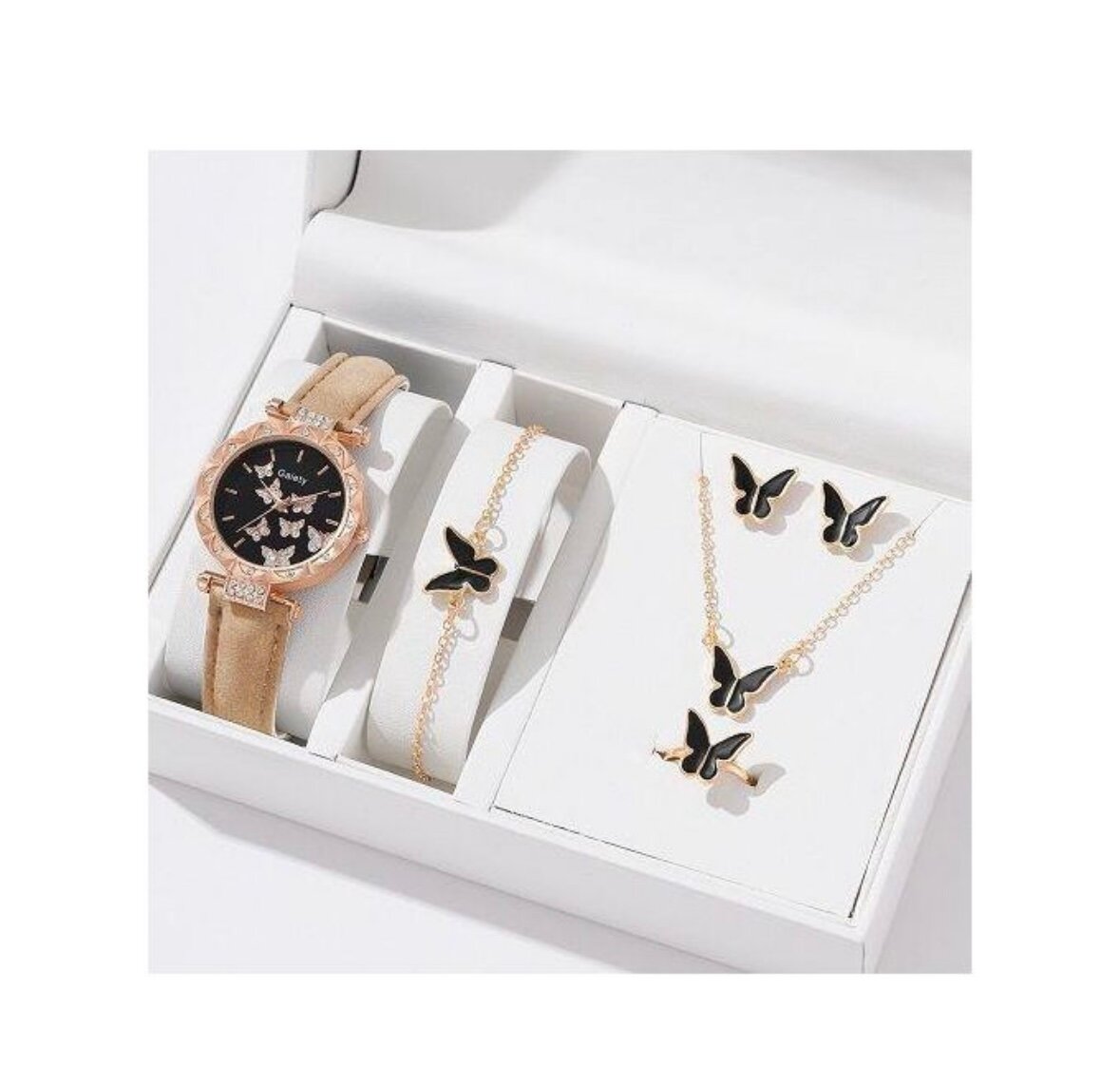 Ajoutez une touche d'élégance à votre tenue avec cet ensemble de montre et bijoux papillon en or rose. Idéal pour les occasions spéciales ou un cadeau charmant.