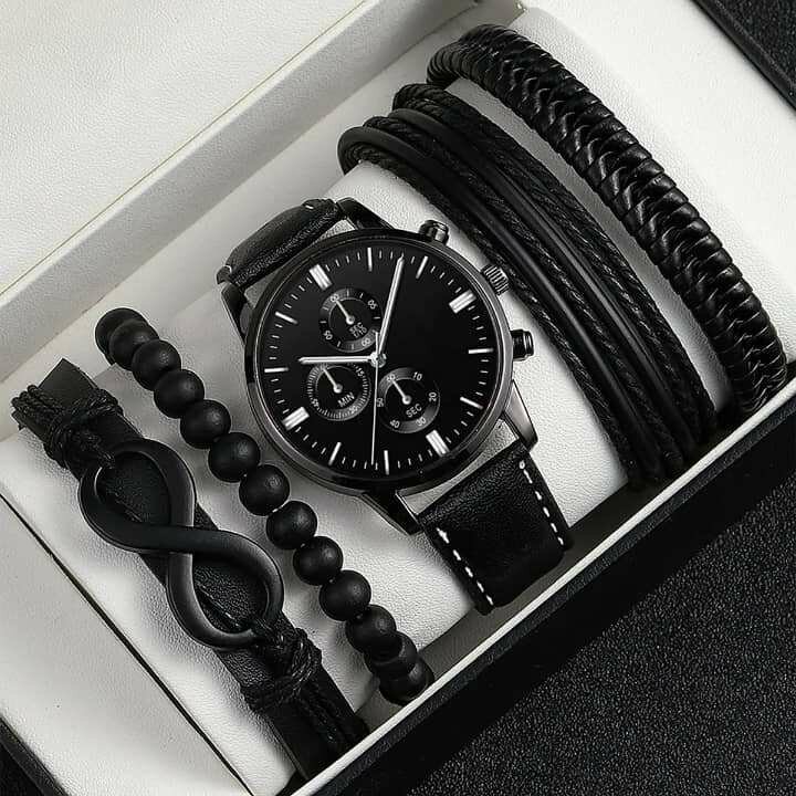Découvrez cet élégant ensemble de montre et bracelets en cuir et perles noirs, parfait pour une allure sophistiquée et moderne. Idéal pour le quotidien ou les occasions spéciales, il complète magnifiquement toute tenue masculine. Sa qualité premium et son design intemporel en font un choix incontournable.