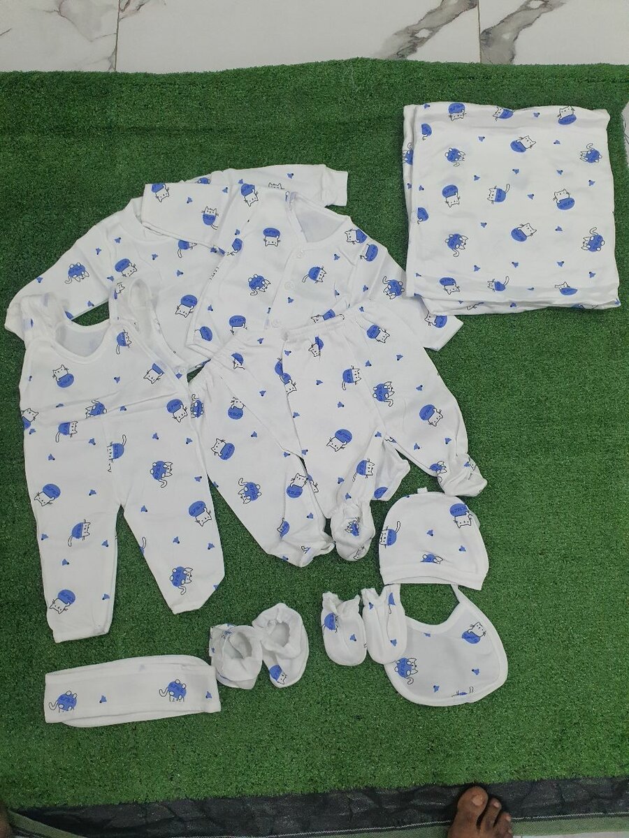 Ensemble complet pour nouveau-né garçon avec motifs adorables, comprenant pyjamas, bonnets, bavoirs et couverture. Fabriqué en coton doux pour le confort de votre bébé. Idéal comme cadeau de naissance.