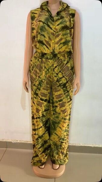 Découvrez cet ensemble pantalon aux motifs vibrants qui incarne l'élégance et le style. Idéal pour des occasions spéciales ou des sorties élégantes, sa coupe impeccable mettra en valeur votre silhouette. Fait d'un tissu léger et confortable, il vous garantit un look à la fois chic et distingué.