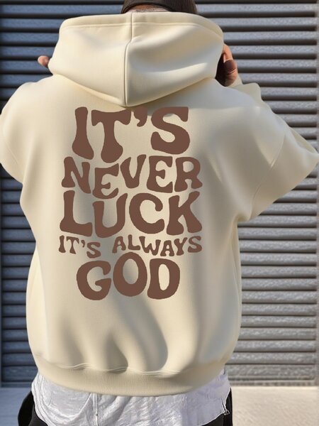 Sweat à capuche imprimé 'IT'S NEVER LUCK'