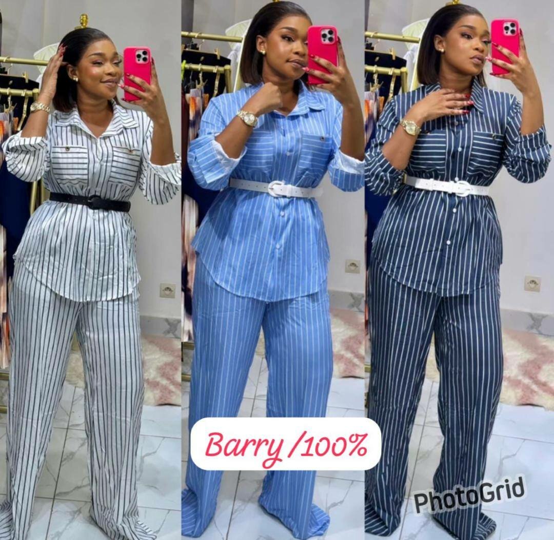 Élégant ensemble pantalon rayé pour femme, parfait pour toutes occasions. Confortable et stylé, avec ceinture pour un ajustement parfait. Disponible en plusieurs couleurs.