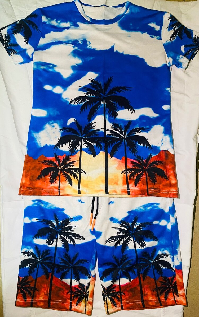 Optez pour cet ensemble plage pour homme avec un imprimé vibrant de palmiers et ciel bleu. Conçu pour allier style et confort, il est parfait pour les journées ensoleillées. Profitez de chaque moment sous le soleil avec ce look tendance et décontracté.