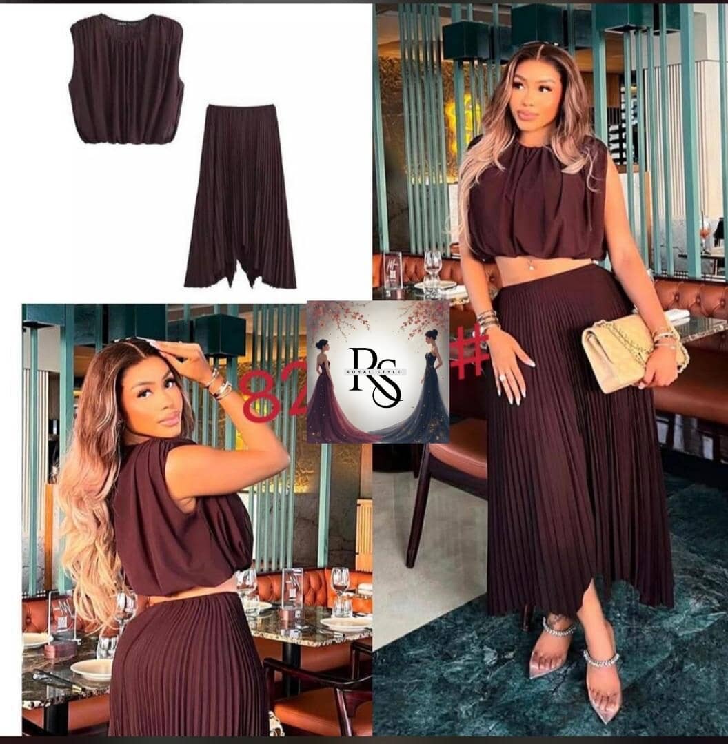 Découvrez cet ensemble chic et moderne, parfait pour une soirée ou un événement spécial. Fabriqué avec soin, il offre un confort inégalé et un style raffiné. La jupe plissée ajoute une touche sophistiquée, tandis que le haut sans manches assure une allure tendance. Complétez votre garde-robe avec ce must-have!