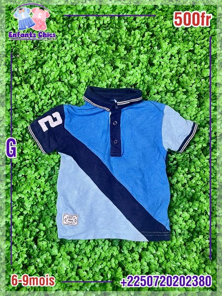 Adorable ensemble pour enfant, parfait pour toutes les occasions. Polo bleu avec manches rayées et jeans élégants. Confortable et stylé pour jouer ou sortir.