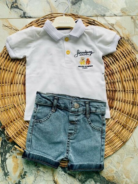 Adorable ensemble pour enfant composé d'un polo rouge vif et d'un short en jean. Idéal pour assurer confort et style à votre petit lors de sorties estivales. Fabriqué à partir de matériaux doux et résistants, parfait pour jouer ou se promener. Un choix charmant pour les tenues décontractées !