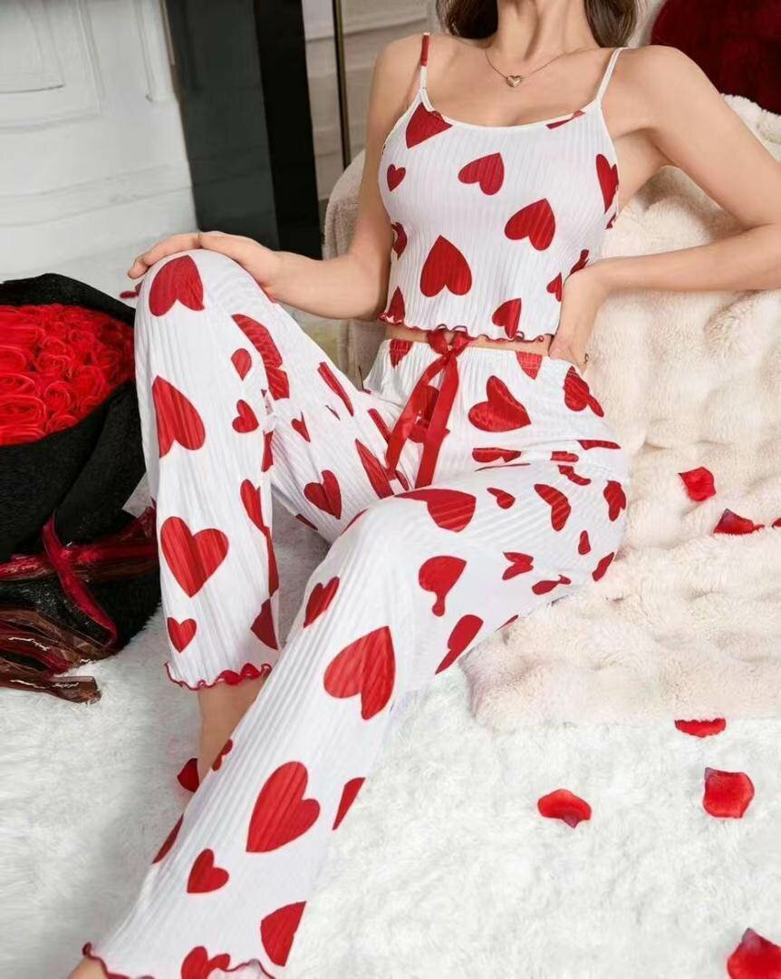 Ensemble de pyjama élégant et confortable avec un motif de cœurs en contraste. Fabriqué avec des matériaux doux pour une sensation agréable. Idéal pour des nuits confortables ou comme tenue décontractée à la maison. Parfait pour ceux qui recherchent style et confort.