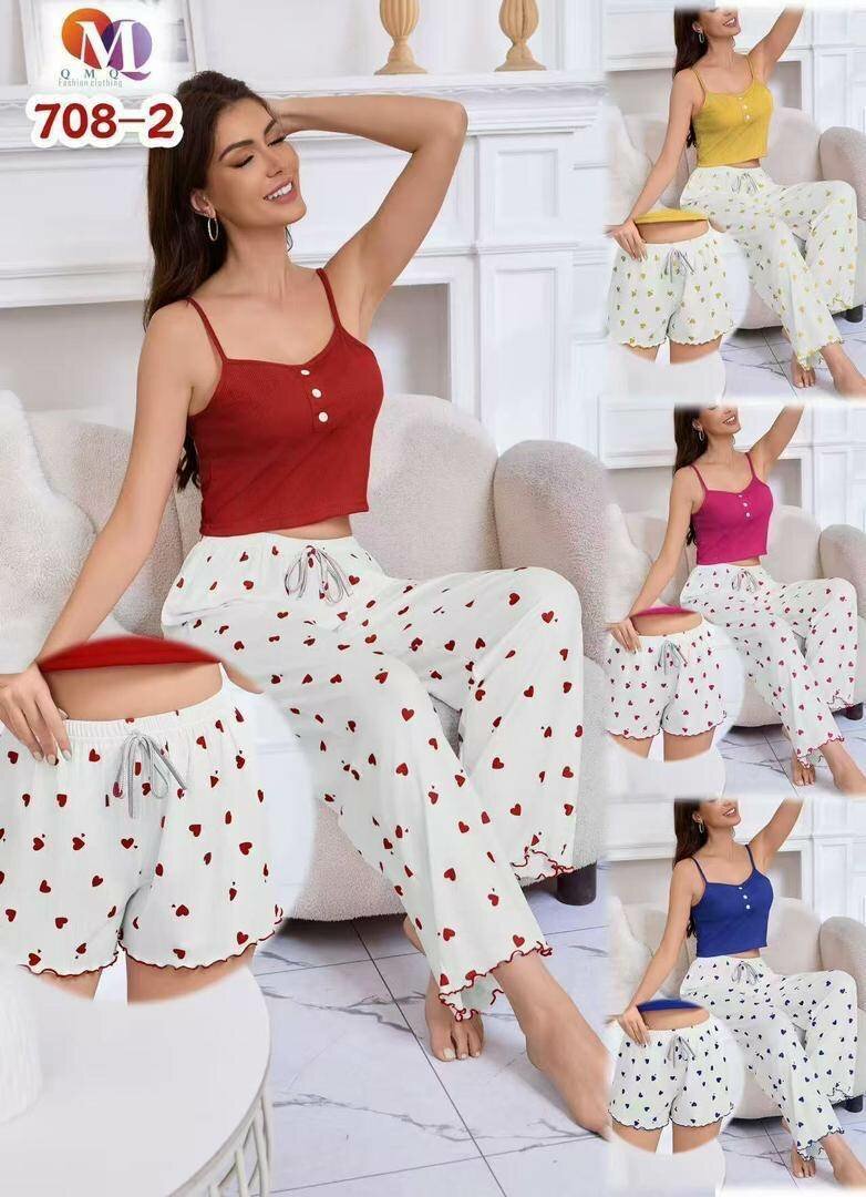 Pyjama femme été confortable et élégant. Conçu pour des nuits fraîches et des journées relaxantes. Tissu doux et respirant. Disponible en plusieurs motifs et couleurs.