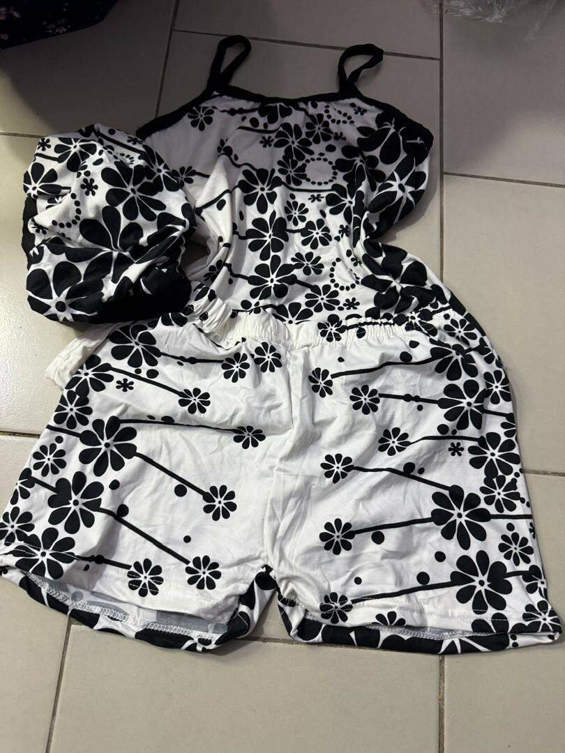 Découvrez notre ensemble pyjama floral pour femme, parfait pour des nuits confortables et stylées. Fabriqué en tissu doux et respirant, il assure un sommeil réparateur. Idéal pour l'été, cet ensemble se compose d'un haut à bretelles et d'un short. Profitez d'un design élégant avec des motifs floraux en noir et blanc qui ajoutent une touche de sophistication.