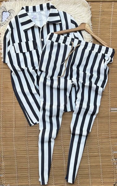 Découvrez cet ensemble élégant à rayures pour un look estival tendance. Composé d'une chemise à manches courtes et d'un pantalon assorti, il est parfait pour les journées décontractées ou les sorties en ville. Confortable et stylé, ce set convient à toutes les occasions.
