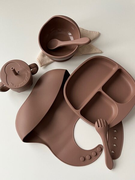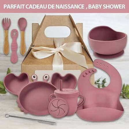Découvrez cet ensemble repas en silicone pour bébé, idéal pour les premiers repas de votre enfant. Comprend assiette à compartiments, gobelet avec paille, bavoir et couverts. Parfait pour un usage quotidien, résistant et facile à nettoyer, conçu pour le confort de votre bébé.