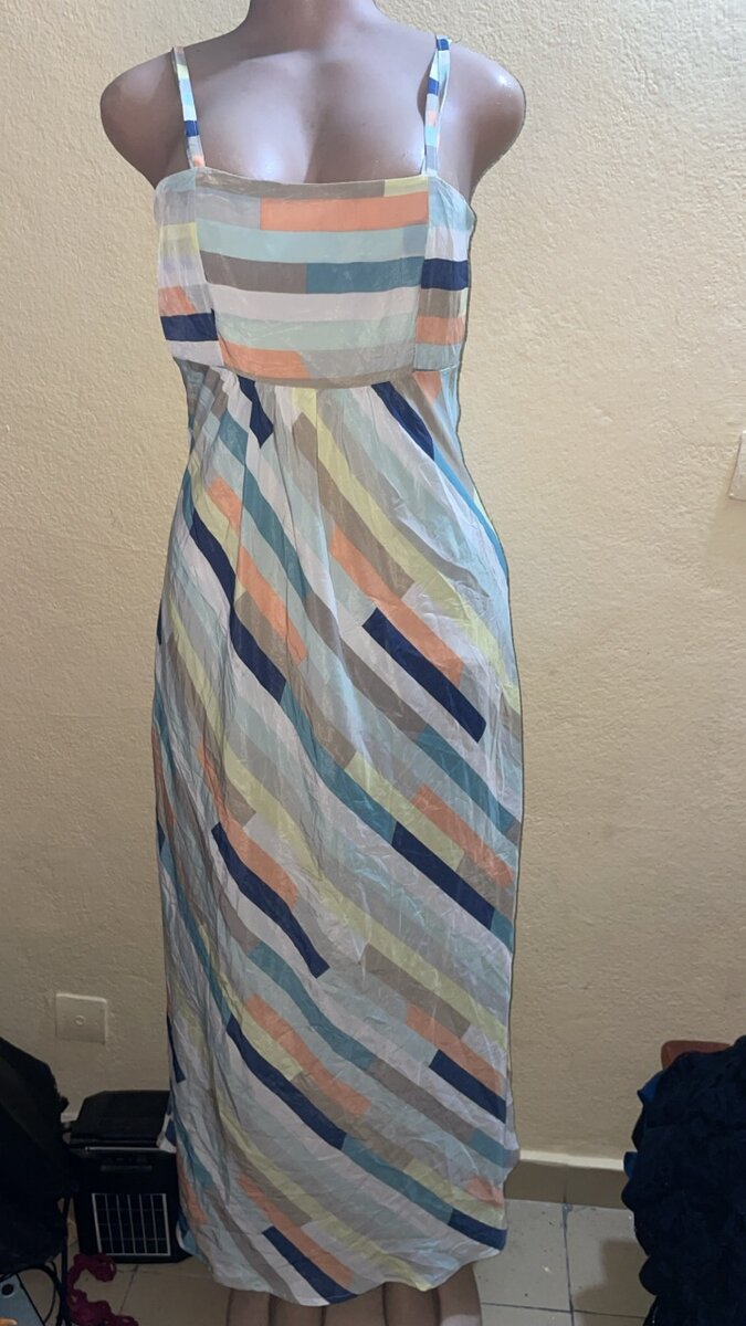 Découvrez cet ensemble de trois robes élégantes idéales pour chaque occasion. La première robe à carreaux est parfaite pour un style décontracté chic. La longue robe bleue est un incontournable pour des soirées élégantes. La robe à rayures colorées ajoute une touche vibrante à votre garde-robe estivale. Confort et style garantis!