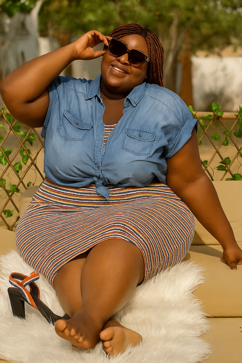 Cet ensemble stylé comprend une robe rayée flatteuse et une chemise en jean classique. Parfait pour les journées décontractées et élégantes. La robe à rayures ajoute de la couleur et de la texture, tandis que la chemise en jean offre une touche moderne et chic. Idéal pour les sorties estivales ou les réunions décontractées. Complétez le look avec des sandales pour un style total!