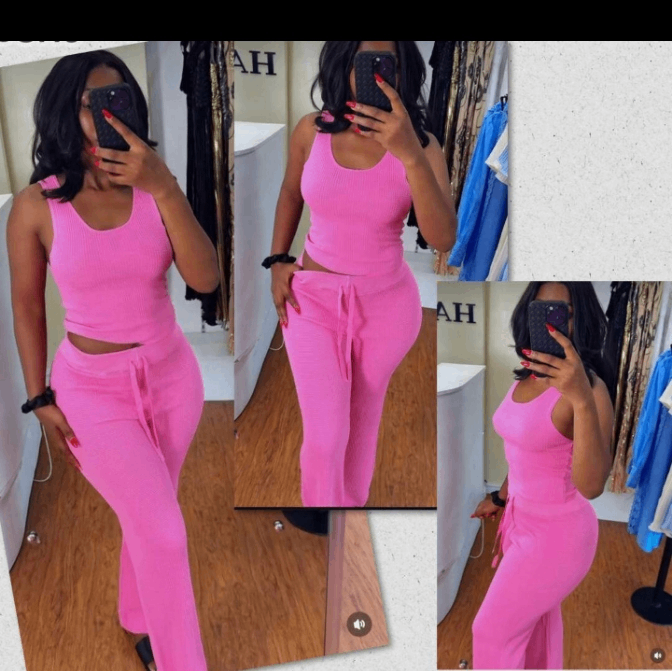 Cet ensemble rose vibrant est parfait pour une tenue décontractée ou une sortie en ville. Fabriqué avec des matériaux doux, il offre un confort optimal. Le design ajusté met en valeur votre silhouette tandis que le pantalon à cordon de serrage assure un ajustement personnalisé. Idéal pour les femmes cherchant à allier style et confort au quotidien.