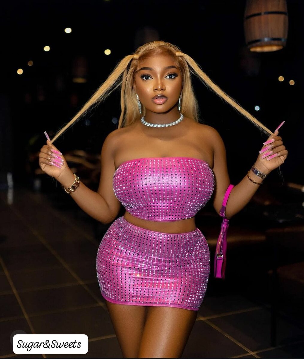 Optez pour cet ensemble rose glamour, parfait pour soirées et événements spéciaux. Effet scintillant, confort et élégance garantis, idéal pour capturer tous les regards. Complétez votre style avec accessoires assortis pour un look sensationnel.