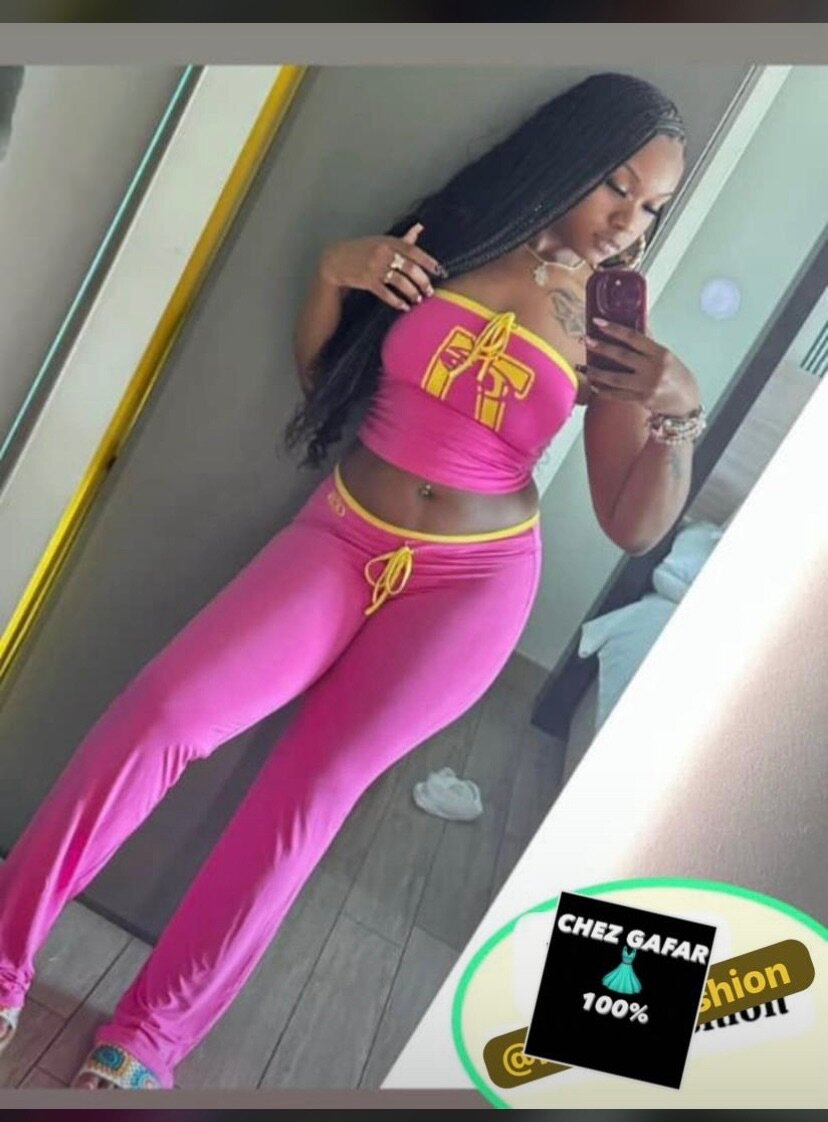 Éblouissez avec cet ensemble rose vibrant pour femme. Composé d'un haut bandeau et d'un pantalon ajusté à taille élastique, il est parfait pour une sortie casual ou une soirée. Confortable et stylé, cet ensemble met en valeur votre silhouette avec élégance. Idéal pour toutes les saisons, il apporte une touche de peps à votre garde-robe.