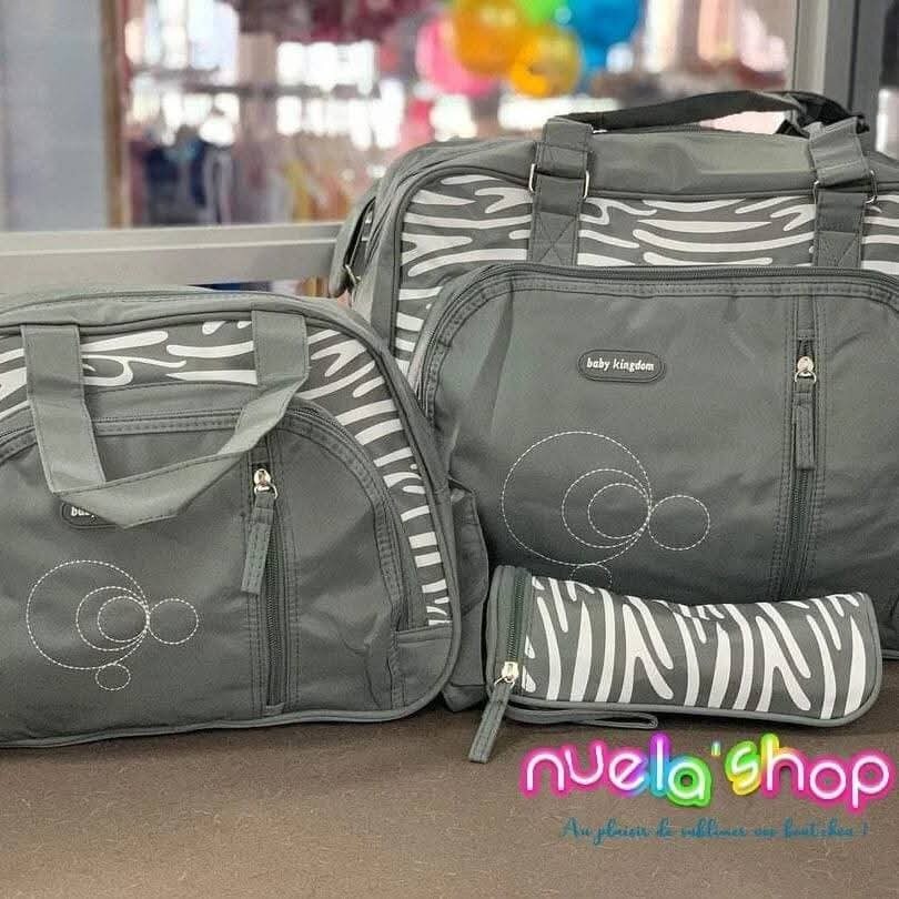 Ensemble pratique et élégant de sacs à langer avec motif zébré. Inclus un sac principal spacieux, un sac secondaire, et une petite pochette supplémentaire. Idéal pour les parents en déplacement, avec suffisamment d'espace pour tous les essentiels de bébé. Léger, résistant et stylé pour un look moderne.