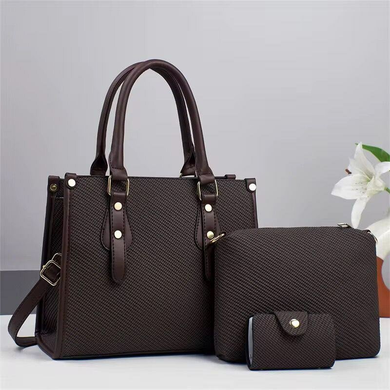Découvrez cet ensemble élégant de sacs à main 3 pièces, idéal pour chaque femme moderne. Composé d'un grand sac à main, d'une pochette et d'un porte-cartes assortis, cet ensemble est parfait pour une utilisation quotidienne ou des occasions spéciales. Fait avec des matériaux de haute qualité, il offre durabilité et style. Disponible en plusieurs couleurs pour s'adapter à votre garde-robe. Parfait pour le travail, les sorties et au-delà !