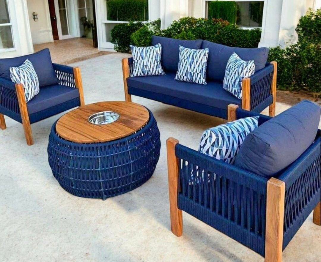 Transformez votre espace extérieur avec cet élégant ensemble de salon de jardin bleu. Comprend un canapé, deux fauteuils et une table basse tressée. Conception robuste avec structure en bois et coussins confortables, idéal pour des moments de détente en plein air. Parfait pour terrasse ou jardin. Achetez dès maintenant et profitez des beaux jours!