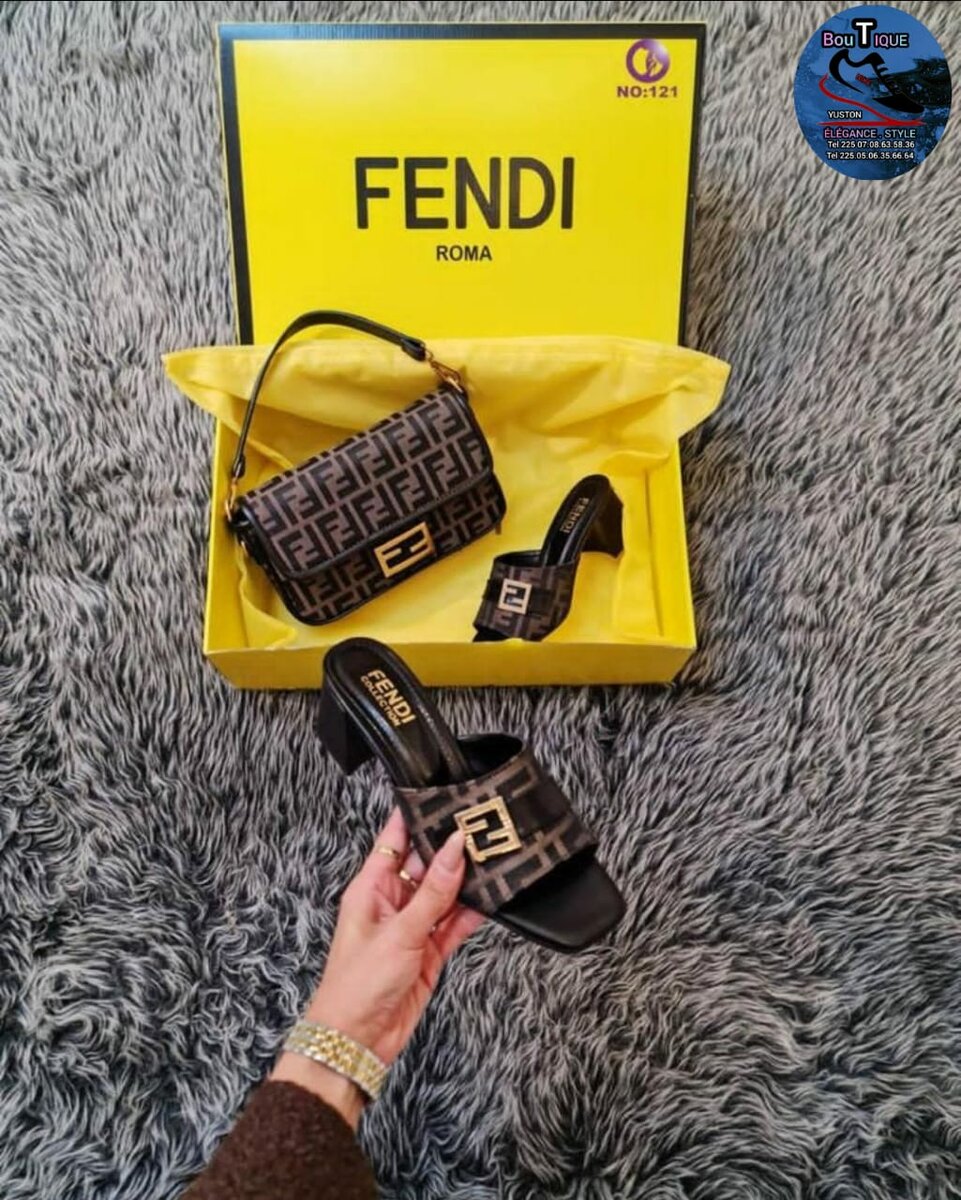 Découvrez l'ensemble sandale et sac Fendi, alliant confort et élégance. Conçu pour les femmes modernes, cet ensemble de luxe est parfait pour les occasions spéciales ou une sortie en ville.