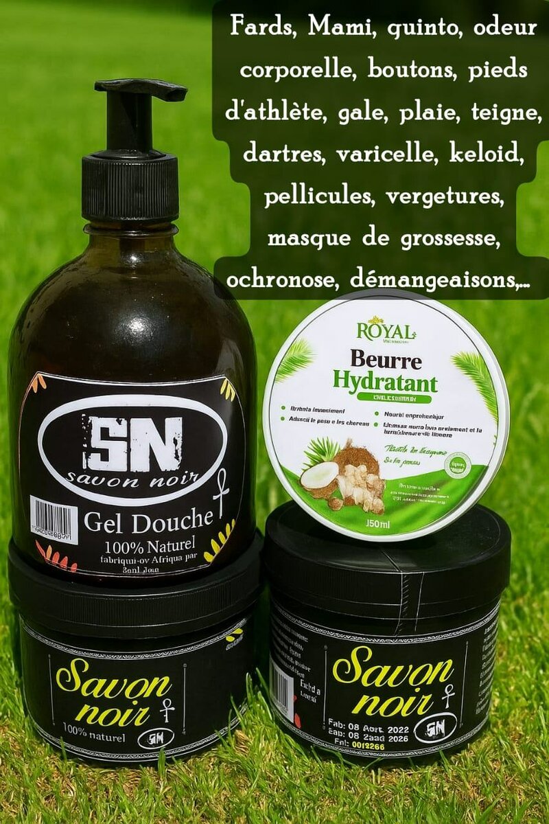 Découvrez notre ensemble de soins de la peau composé de Savon Noir et Beurre Hydratant 100% naturel. Idéal pour traiter les imperfections cutanées, hydratation profonde et soulagement efficace des démangeaisons. Convient pour tous types de peau et usage quotidien. Un choix parfait pour un rituel de soin naturel.