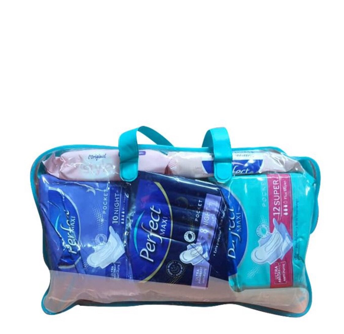 Trousse pour femme : 03 serviettes perfect ( 2 nuit et 1 jour) + 01 lot de lingette Démaquillante + 01 lot de lingettes intimes