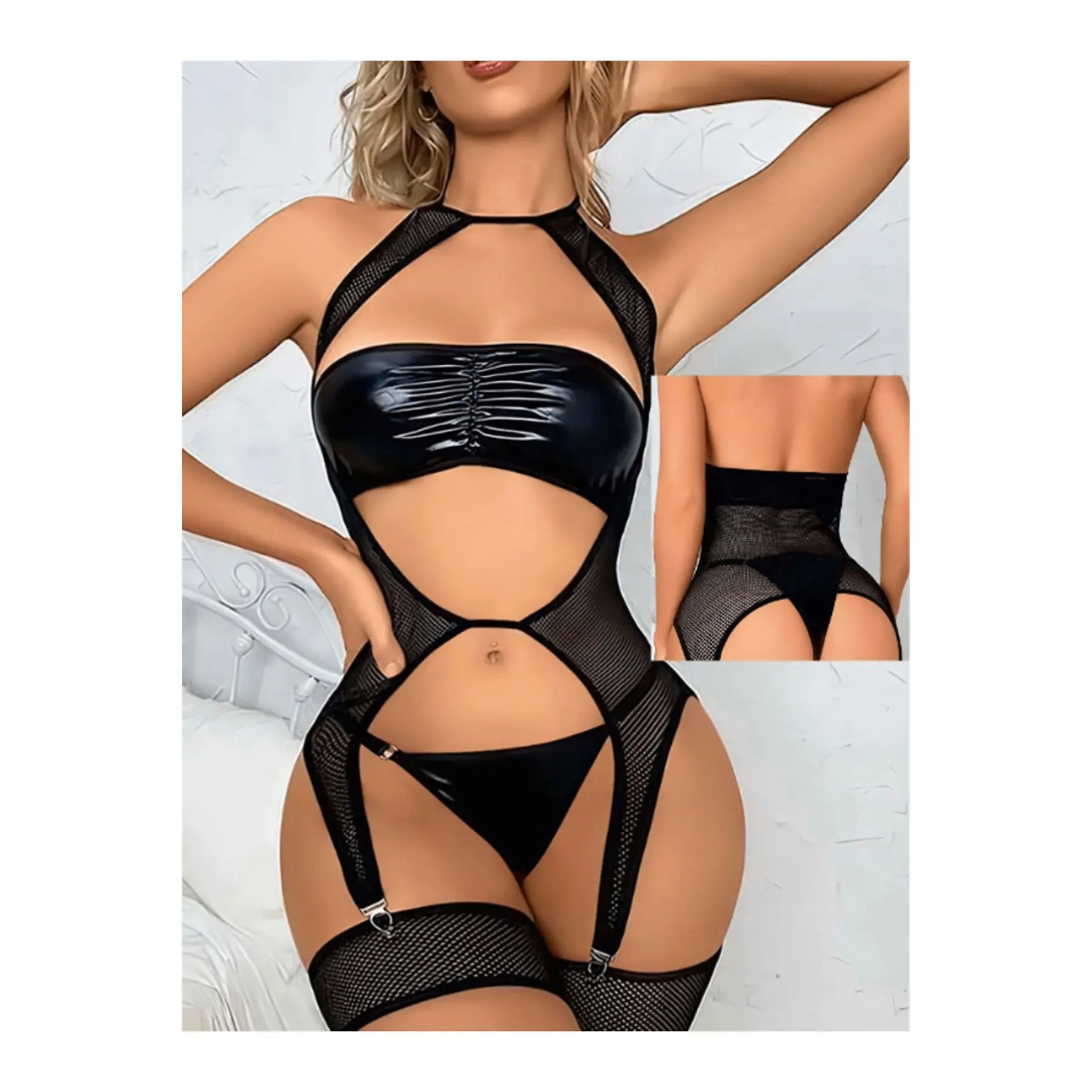 Découvrez notre ensemble sexy en dentelle noire, conçu pour sublimer vos courbes et éveiller les sens. Avec son design audacieux à découpes et son tissu brillant, il est idéal pour les occasions spéciales. Fabriqué avec des matériaux doux et extensibles pour un confort optimal. Parfait pour ajouter une touche glamour et séduisante à votre garde-robe.